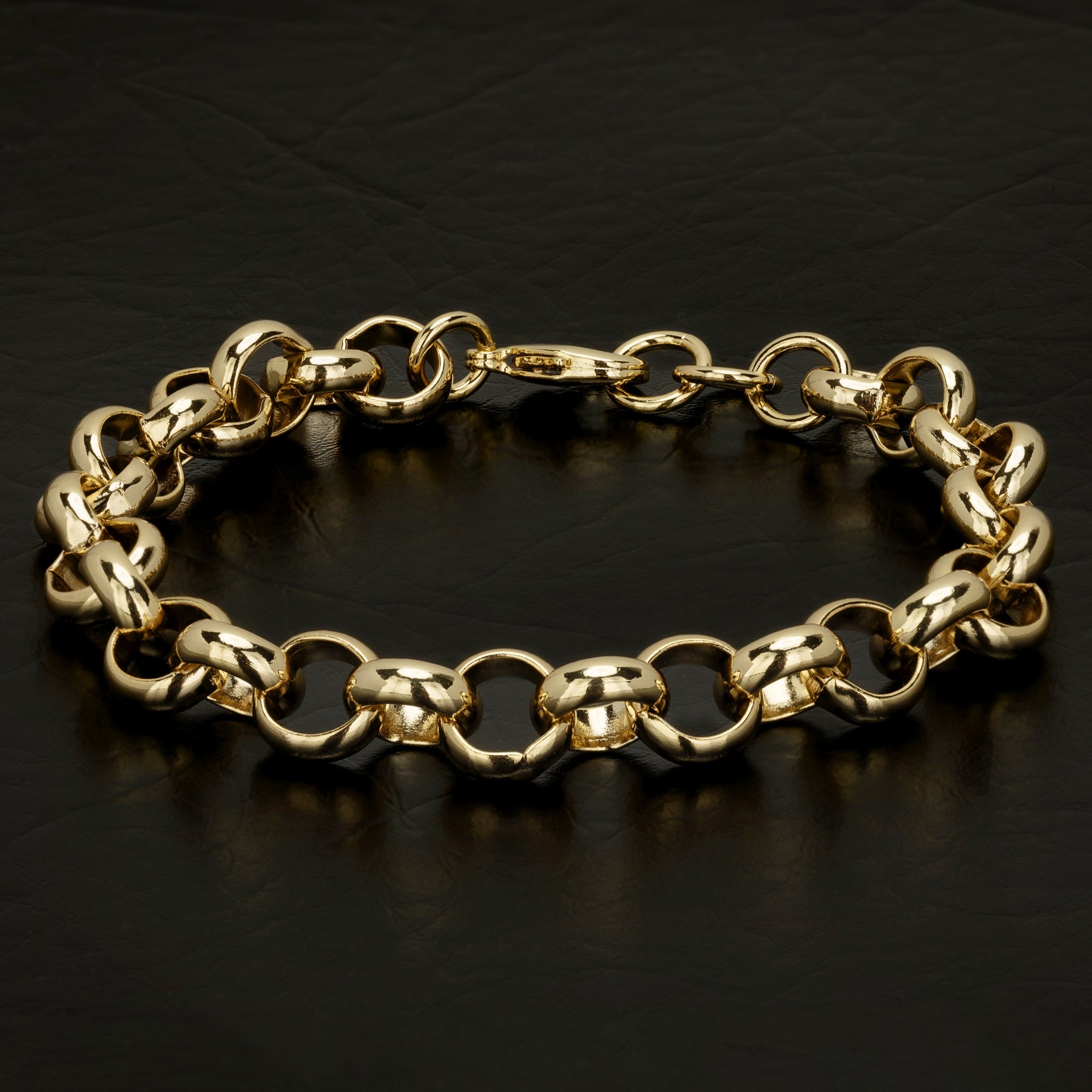 This 10mm 9ct gold plated Belcher bracelet is a bold, stylish accessory for men. Measuring 9 inches, it features premium quality links with a polished finish that delivers the look of genuine gold. Durable and comfortable, this bracelet is perfect for daily wear or special occasions, adding a classic, sophisticated touch to any outfit.