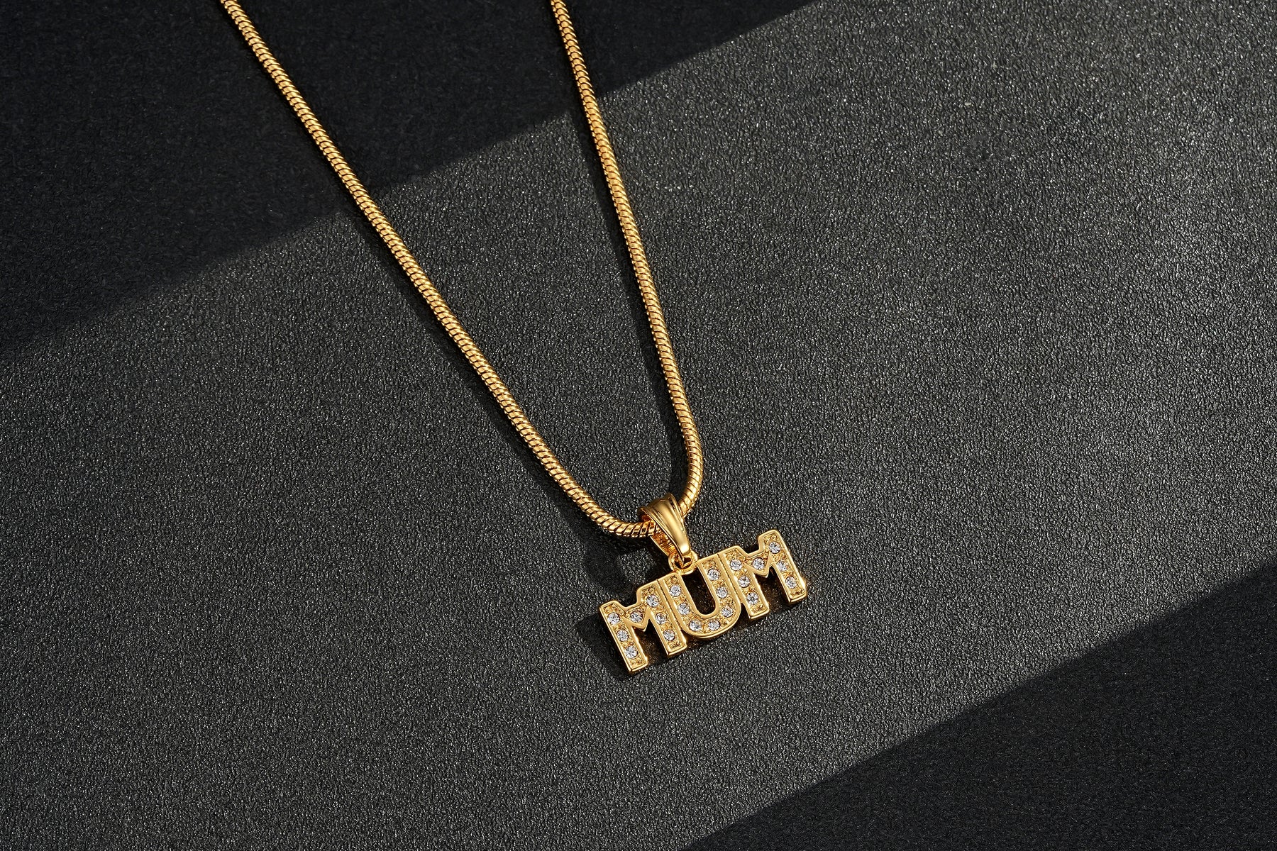 Gold Diamond MUM Pendant Necklace: Elegant heartwarming design celebrating motherhood